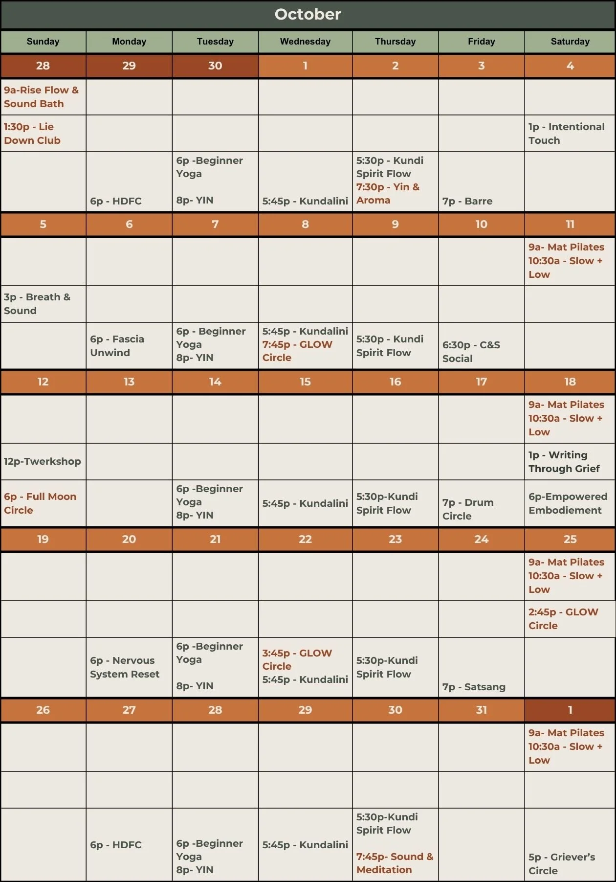 We are a co-working space and some member’s have their own booking system. Classes shown in Orange are not booked through City & Soul’s portal. You can access these classes through the following member’s websites. Feel free to reach out with any questions.